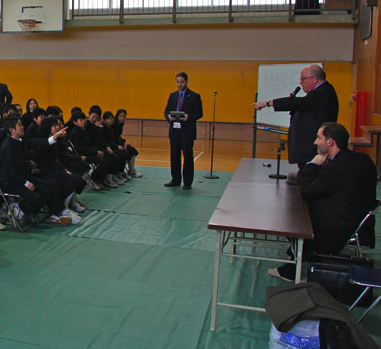 Finally, he focused on the importance of “making mistakes”, explaining that you can’t learn without doing so. He even said that making mistakes was part of the fun! To highlight that point, he told us a personal story he had of learning Japanese and telling a shocked Japanese language teacher that he “drank” the newspaper that morning! (The words “drink” and “read” are similar in Japanese). Finally he explained that students should make a point in their lives to go places. He encouraged them to travel and have as many foreign experiences as they could. He said that living in and travelling in foreign countries not only helps one to learn language, but to learn more about life and the world we all share.